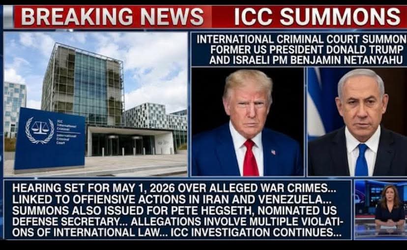 In a dramatic escalation that is sending shockwaves through global politics, the International Criminal Court (ICC) in The Hague has officially summoned former U.S. President Donald Trump, Defense Secretary Pete Hegseth, and Israeli Prime Minister Benjamin Netanyahu to appear at a high-stakes hearing on May 1, 2026.