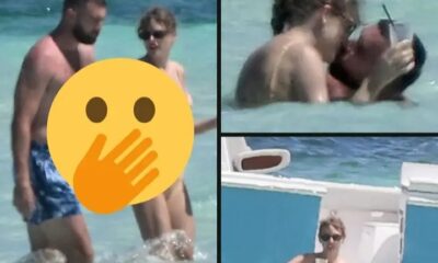 Travis Kelce can’t keep his eyes off Taylor Swift’s sizzling figure as she stuns in a barely-there swimsuit that left little to the imagination, while heating...